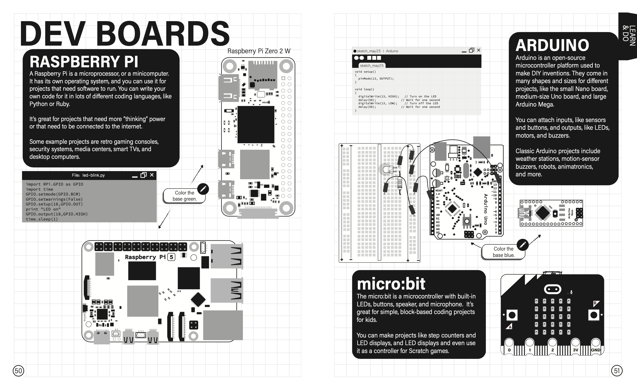 I based the layouts and illustrations on the bright paper-theme throughout the book, focusing on using simple shapes to guide and engage the reader along each project.