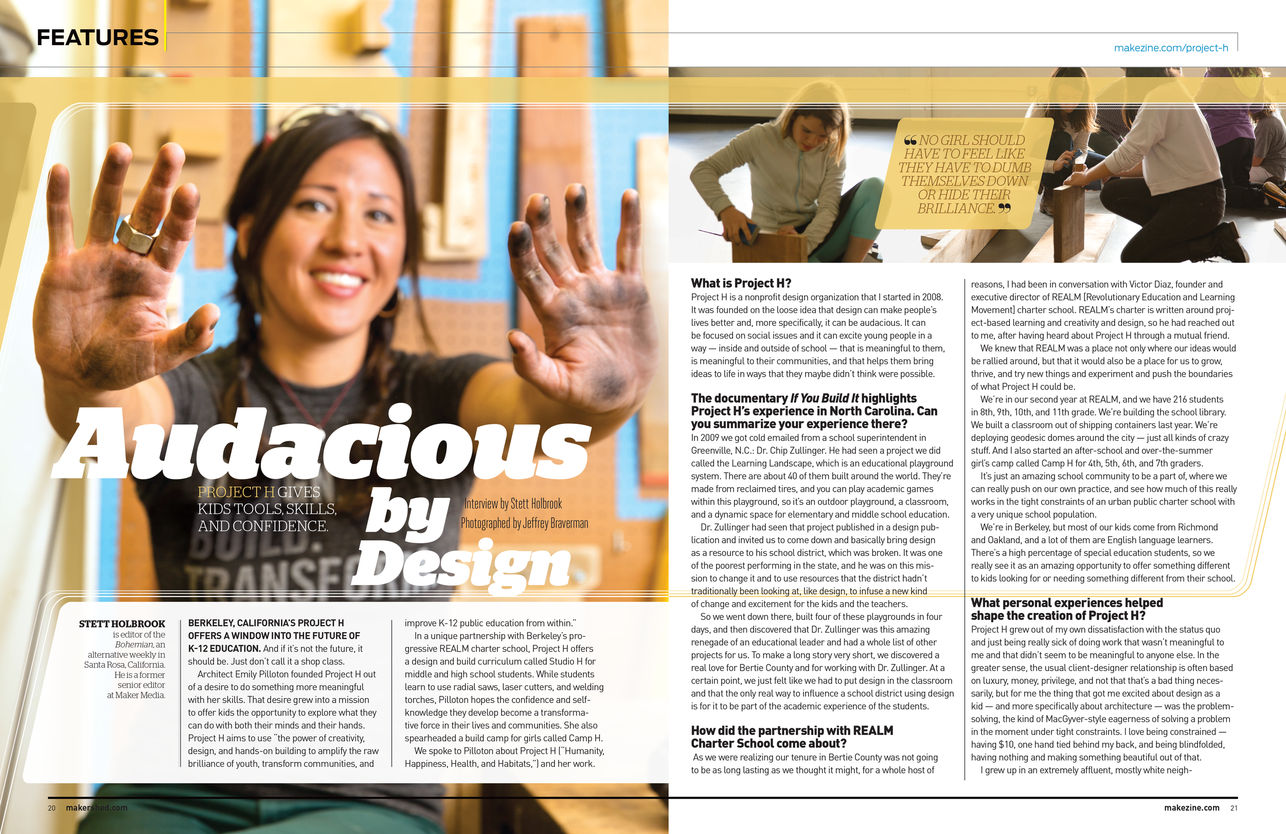 Back in 2013, I was contracted to do design for Make Magazine. Within 8 months I became a full time employee, and I worked alongside the creative director across all publishing projects from the magazine layouts themselves to books, project tutorials, and even writing articles.